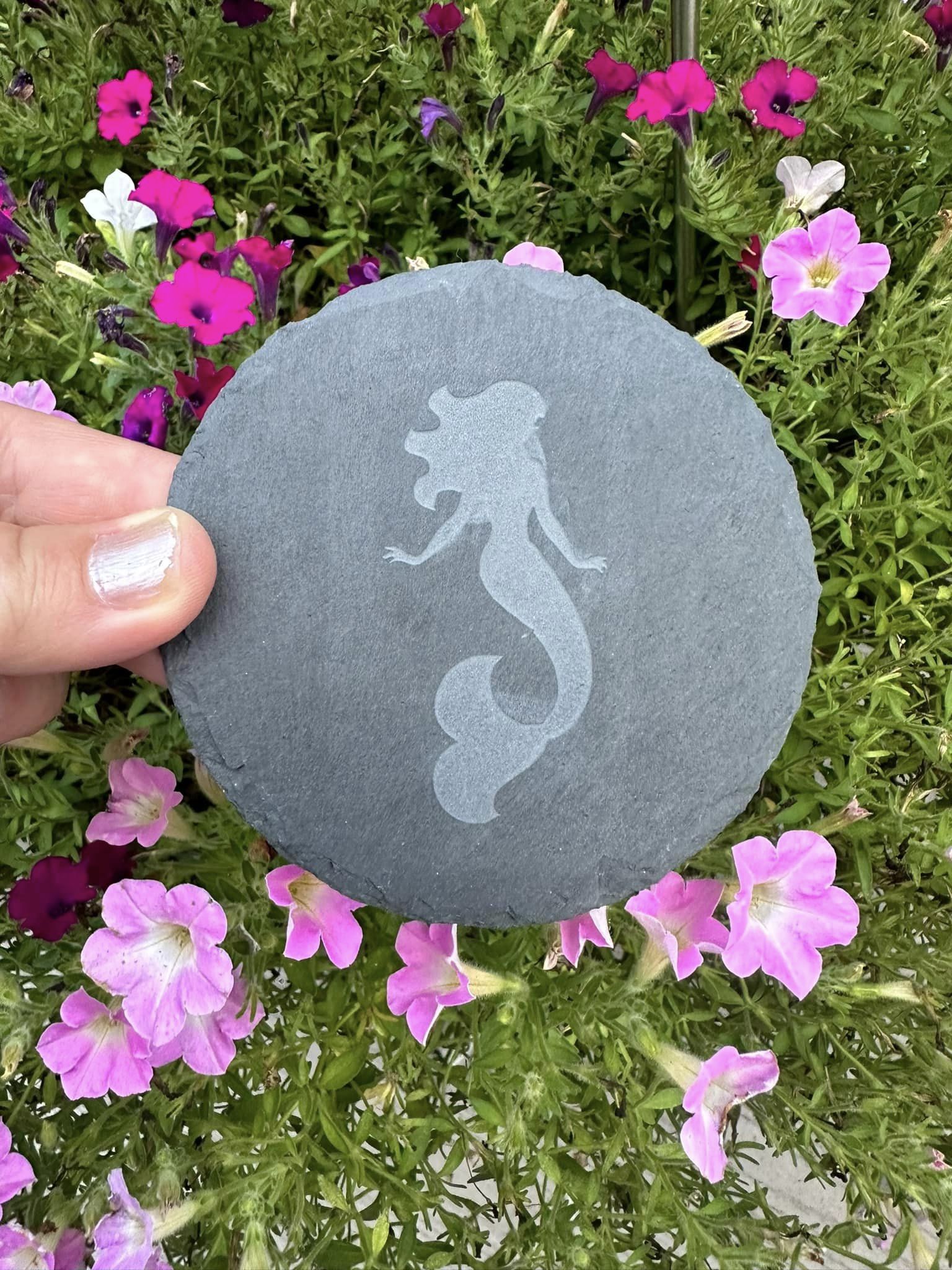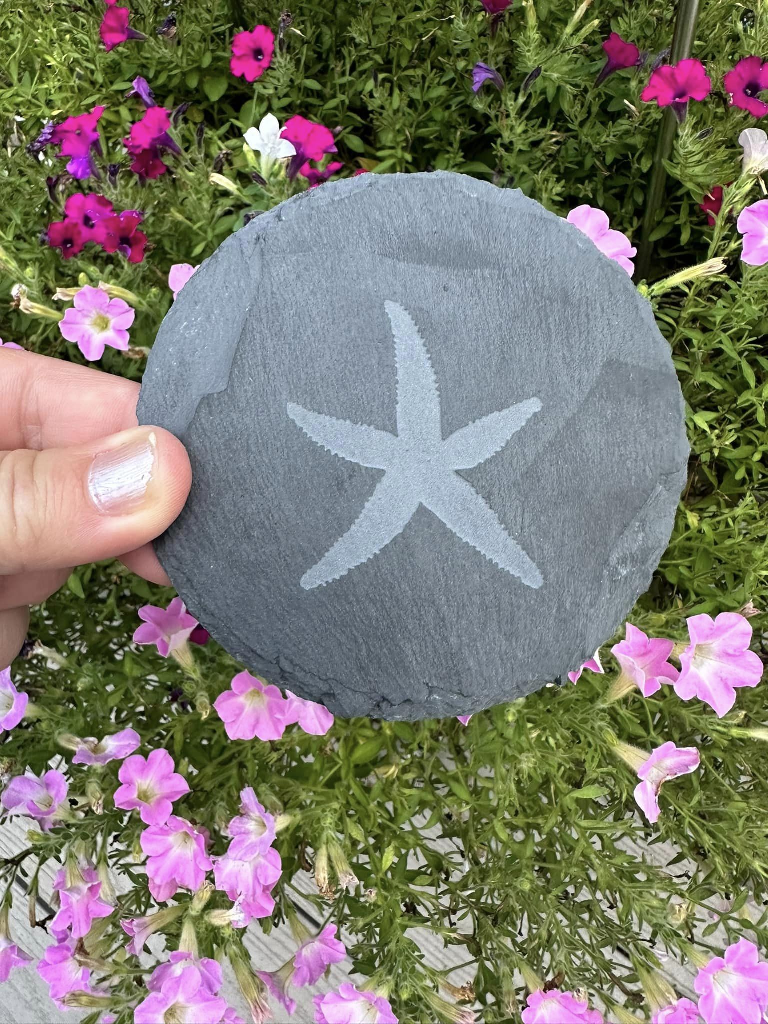 Black Slate Coasters with padded feet to prevent scratching surfaces.